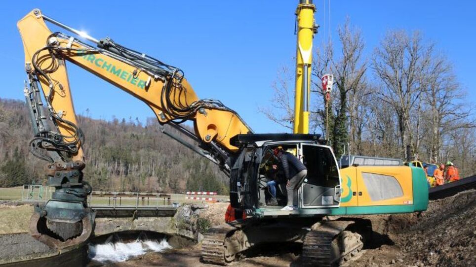 Endlich! Nach etlichen Jahren kann das Kraftwerk und die Wehranlage in Wunderklingen saniert werden. Die Gemeindepräsidentin von Hallau freute sich, die zahlreich erschienenen Gäste am Spatenstich bei der Wehranlage in Wunderklingen begrüssen zu dürfen. Vor Ort waren Vertreter des Kantons, der am Bau beteiligten Unternehmen, Gemeindevertreter, die Nachbarn aus Wunderklingen sowie die Mitarbeiter der Technischen Betriebe Hallau. (sim)