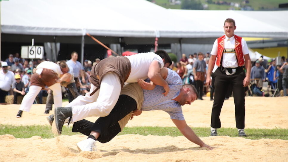 Am Sonntag kämpften die Schaffhauser Schwinger vor rund 6000 Zuschauenden am St. Galler Kanto-nal Schwingfest in Werdenberg. (Petra Vollenweider)