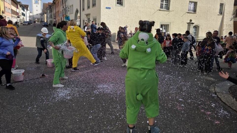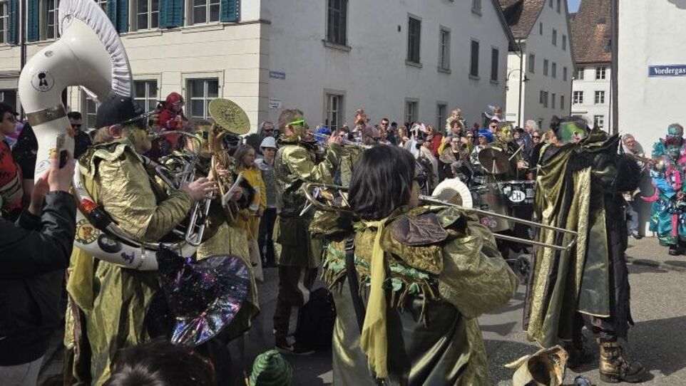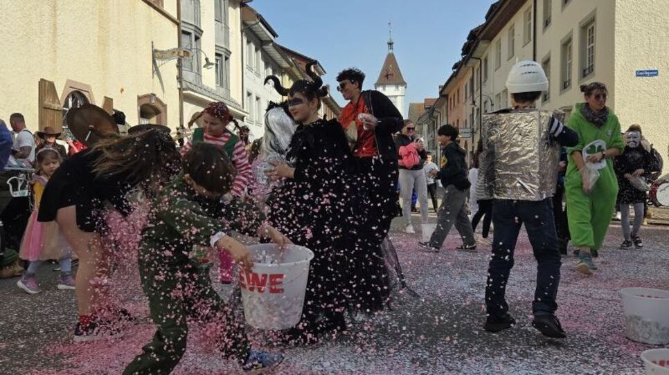 Zwei Guggenmusiken aus dem Welschland sprangen ein, damit die Kinderfasnacht im Städtli Neunkirch auch schön laut wurde. Die Fasnacht startete am Bahnhof mit dem Umzug und endete bei der Alten Linde. (ewa)