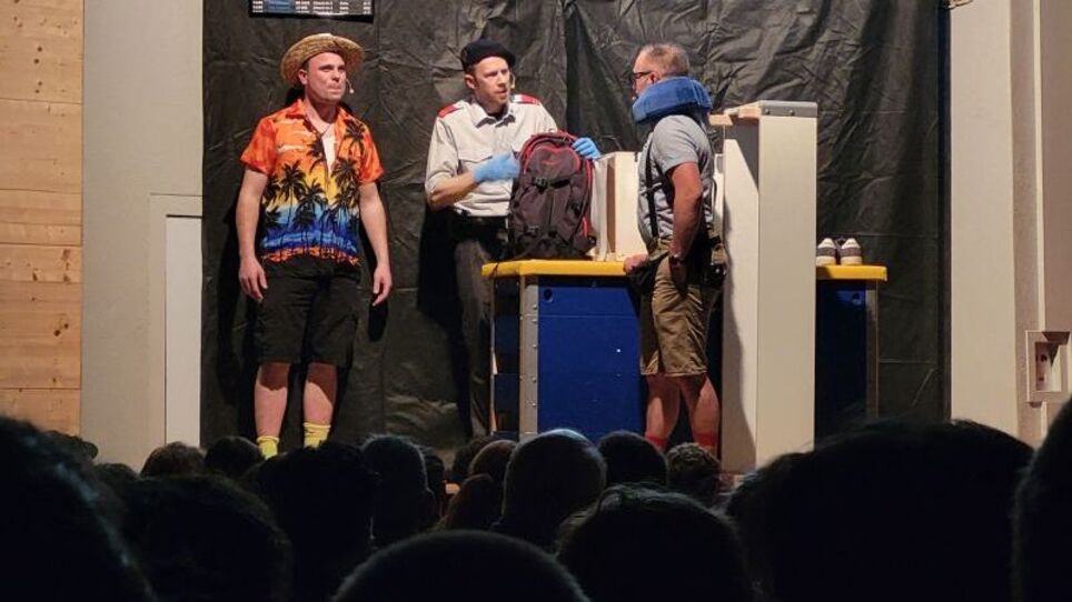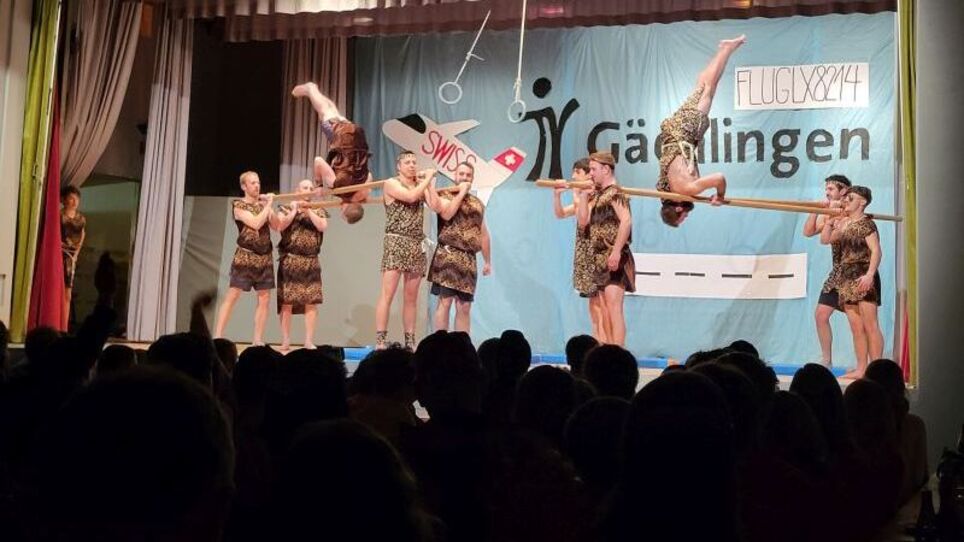 Mit viel Witz, Fantasie und Liebe zum Detail entführte der Turnverein Gächlingen sein Publikum am Chränzli auf eine ganz besondere Reise. Unter dem Motto „Flug LX8214 – Boarding für Anfänger“ verwandelte sich die Turnhalle kurzerhand in einen Flughafen inklusive Check-in, Gate-Chaos und Ferienstimmung. (Alessia Vogelsanger)