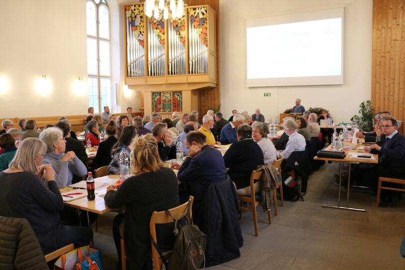 Die Synode der Evangelisch-reformierten Kirche des Kantons Schaffhausen tagte während knapp fünf Stunden mit 58 Synodalen in der Kirche Buchberg-Rüdlingen. Synodepräsident Werner Käser leitete durch die Geschäfte. (Doris Brodbeck)