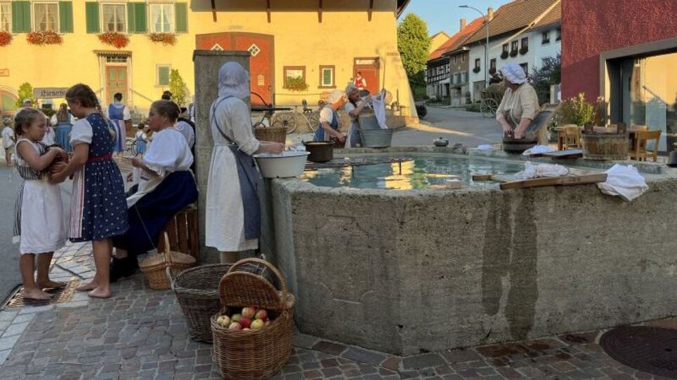Ein einzigartiges Spektakel bei schönstem Sommerwetter feierte am Wochenende in Wilchingen Premiere. Am Originalschauplatz vor dem ehemaligen Gemeindehaus versetzten sechzig Schauspielerinnen und Schauspieler ihr Publikum mit dem Freilichtspiel «Wilchinger Handel» zurück in die frühe Neuzeit, als die Obrigkeit in Schaffhausen auf ihre Rechte pochte und die Bürger einstige Zusagen verteidigten. (ju)