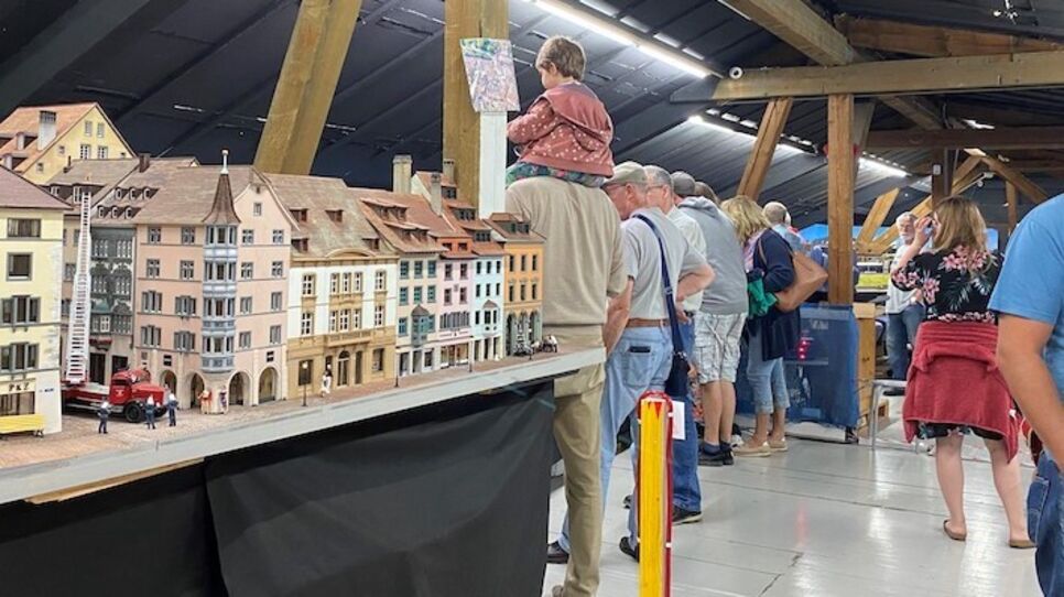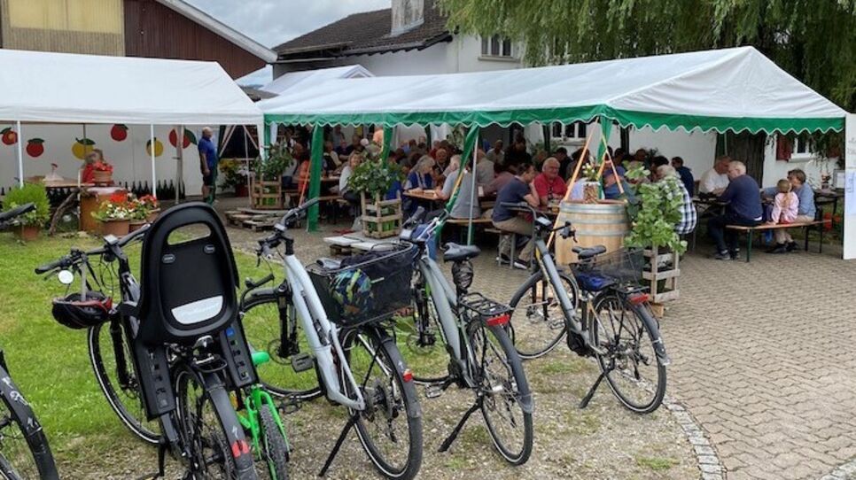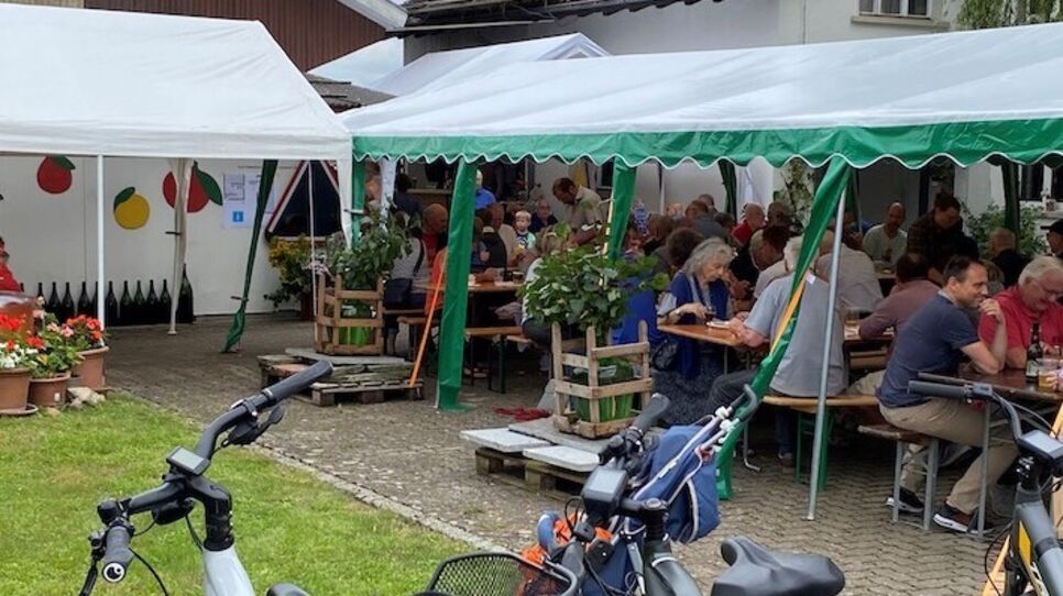 Nach fünfjähriger Pause öffnete das Weingut und Mostereiunternehmen Kurt Hablützel in Wilchingen wieder seine Tore zum Sommerfest. Rasch füllten sich die Plätze unter den schützenden Zeltdächern, die glücklicherweise diesmal wirklich gegen die Sonne schützten. Wer keinen Sitzplatz ergattern konnte, nutzte die Wartezeit mit einer Besichtigung der legendären Eisenbahnanlage unter dem Dach des Betriebsgebäudes. (ju)
