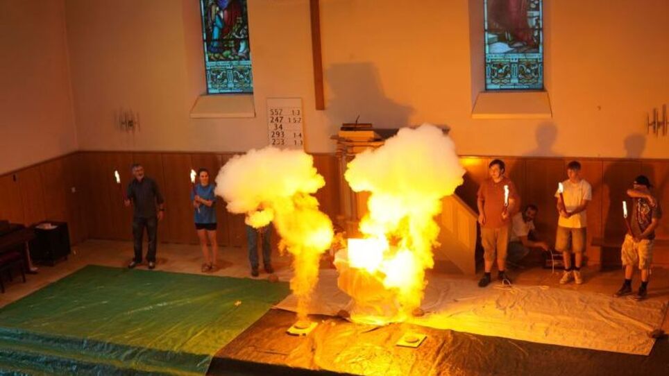 Nach einem freundlichen Empfang von Pfarrer Lukas Huber im Pfarrgarten, der auch die beherzte Gründungsfeier in der Kirche Löhningen leitete, wurde die Gründung des Verbands Junge Kirche Klettgau mit Fackeln, Feuer und einem Dankesgebet, gefeiert. (kan)