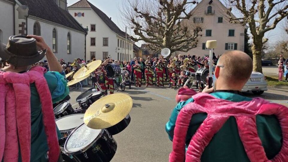 Zwei Guggenmusiken aus dem Welschland sprangen ein, damit die Kinderfasnacht im Städtli Neunkirch auch schön laut wurde. Die Fasnacht startete am Bahnhof mit dem Umzug und endete bei der Alten Linde. (ewa)