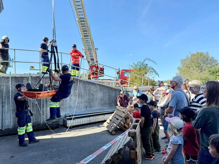 Die Hauptübung des Feuerwehrverbands HOT fand am Samstag rund um die Landi Wilchingen statt. Zahlreiche Schaulustige kamen dabei voll auf ihre Kosten. (Beatrix Bächtold)